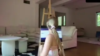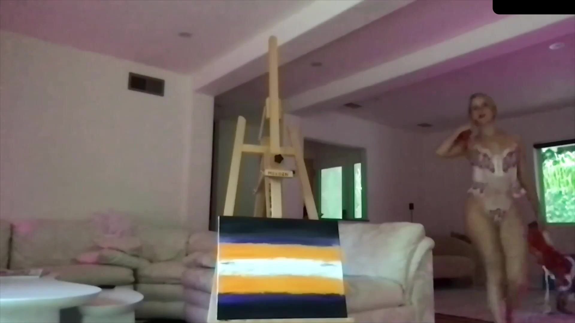Caroline Zalog, Painting In Her Sexy Lingerie Livestream Onlyfans Video Leaked